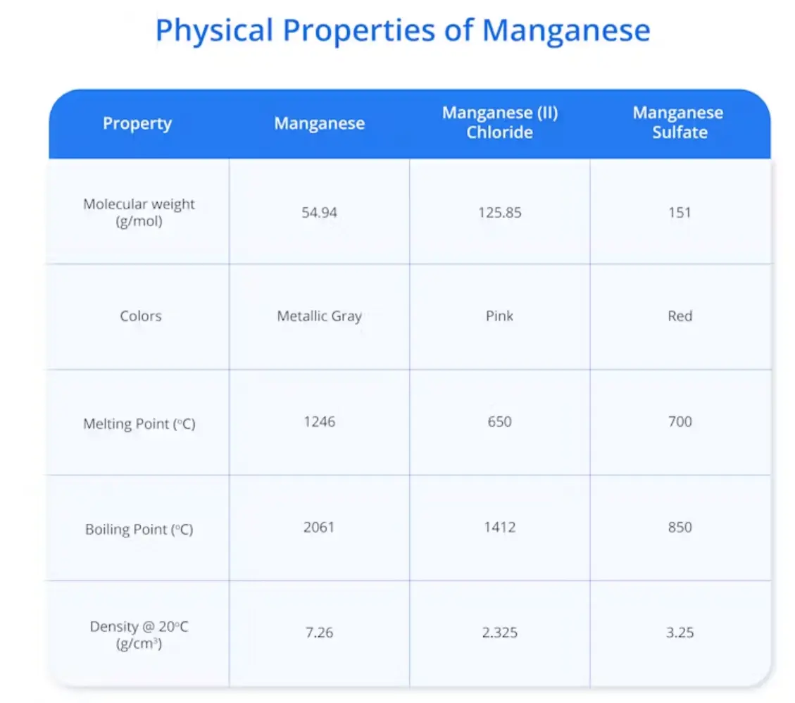 Manganese has an array of attractive properties, both physical and chemical, that make it a no-brainer for industrial use. Let’s take a look at some of these.